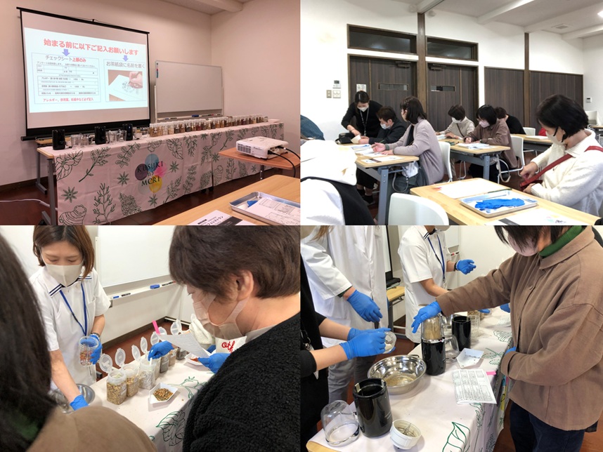 到着すると、健康茶づくりの会場に案内され、いくつ